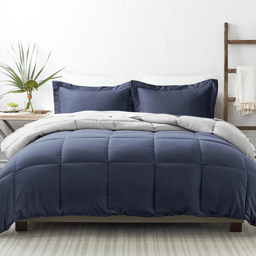 Sleep in the ultimate comfort and warmth in our Down Alternative Reversible Comforter by Southern Comfort Linens, perfect for any season. We offer a variety of color combinations that are sure to add elegance to any bedroom decor. Enjoy your best nights sleep without sneezing due to allergens that are found in goose down. Our microfiber comforter is resistant to dander and dust as well as being naturally 100% hypoallergenic, antimicrobial, and antibacterial. The superior crafted baffle-box construction ensures the fill will have minimal shifting providing you with cozy snuggles all night.