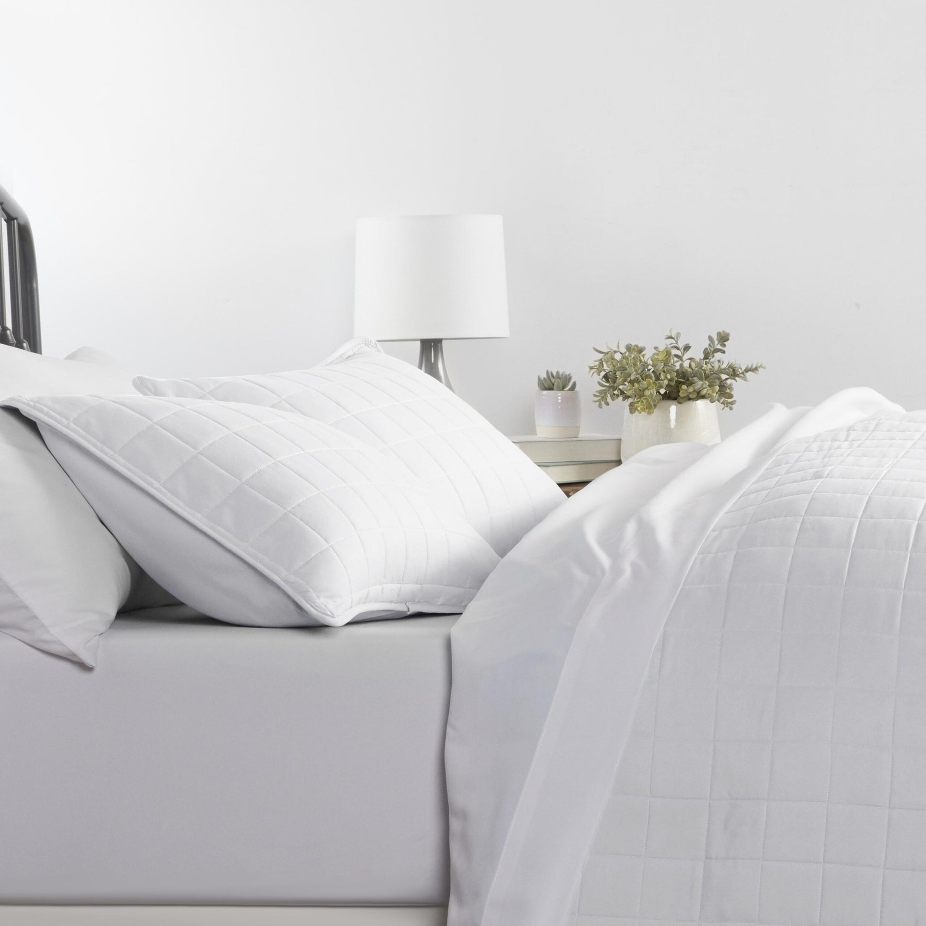 White Square Pattern Quilted Coverlet 3 Piece Set
