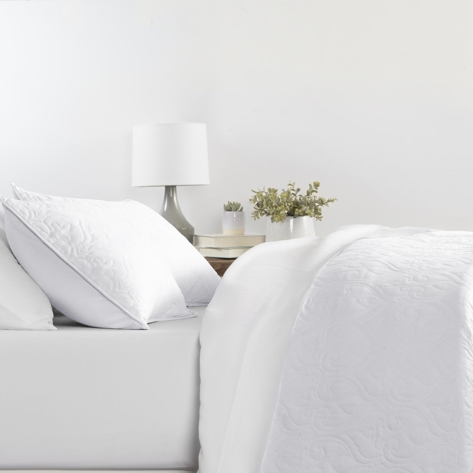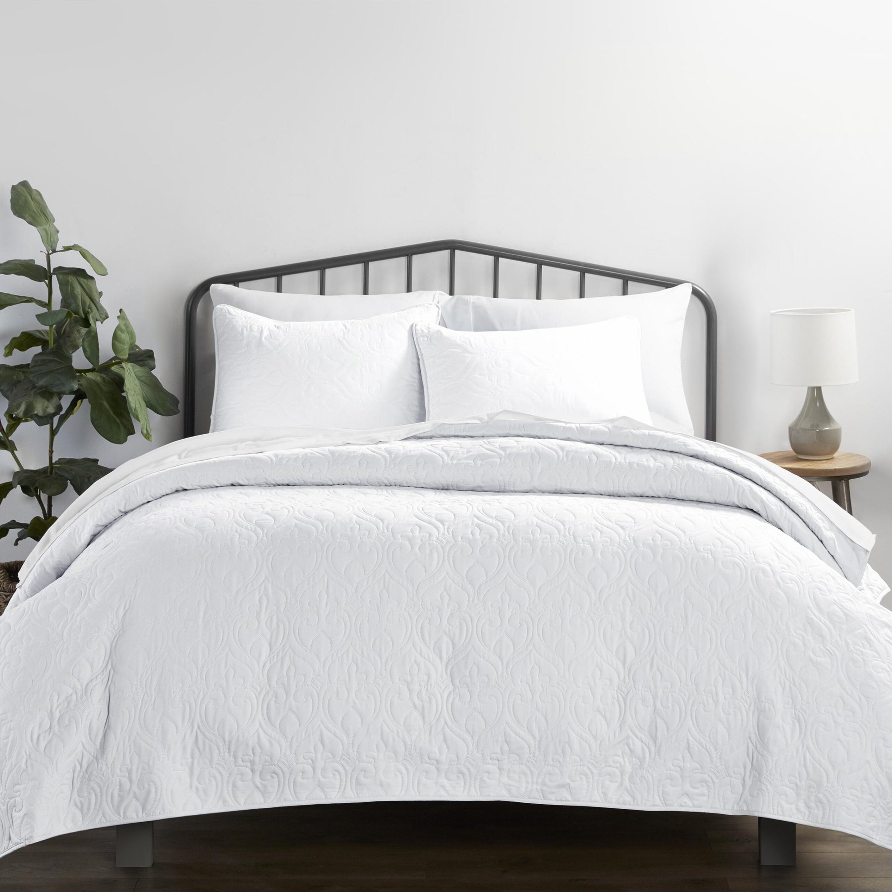 White Ultra Soft Damask Pattern Quilted 3 Piece Coverlet Set