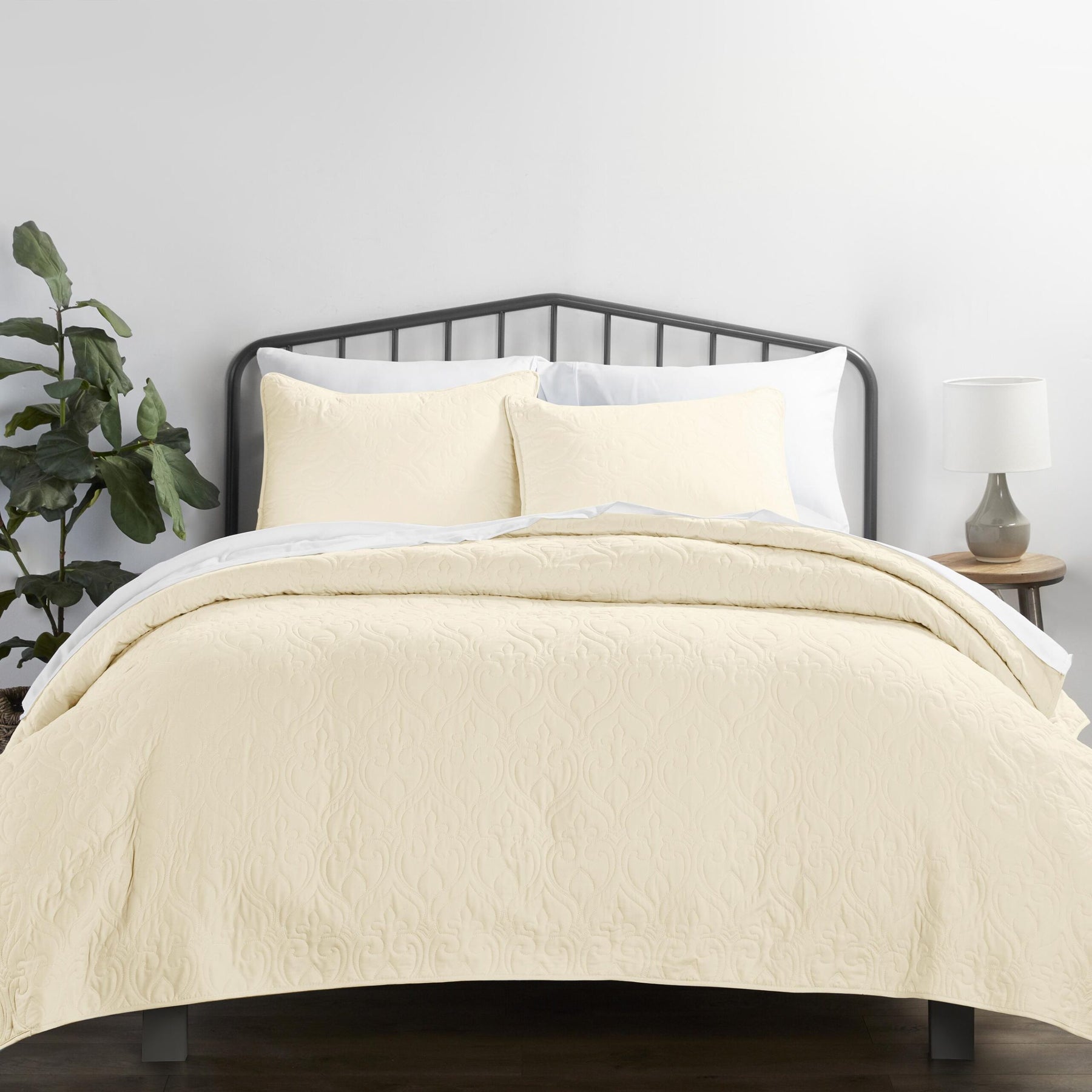 Yellow Ultra Soft Damask Pattern Quilted 3 Piece Coverlet Set